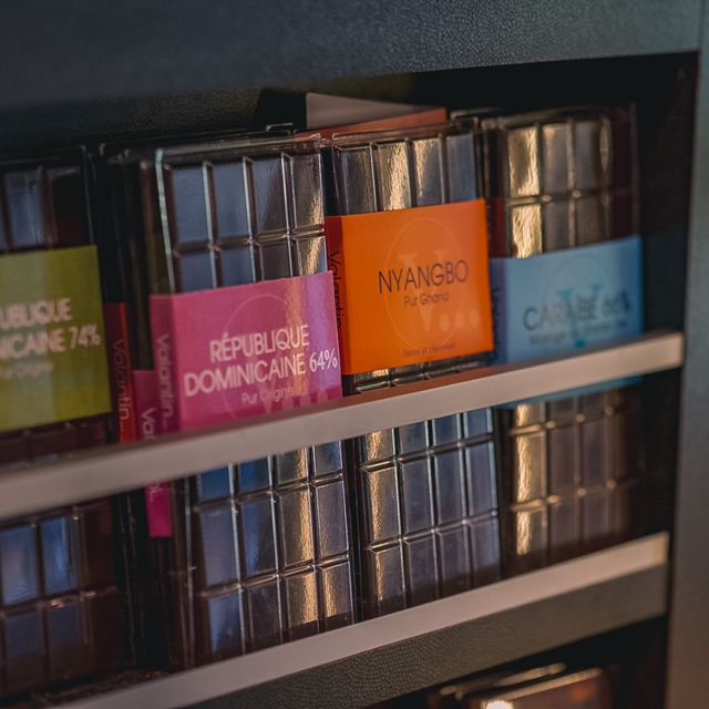 La Pâtisserie Valantin a choisi comme partenaire Valrhona pour sa sélection de cacao et de chocolat afin de réaliser toute sa gamme de chocolat maison et de pâtisseries fines.